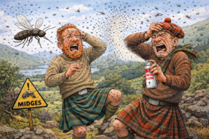 What’s more iconic than the Scottish Midgie (midge) – fiercer than the Loch Ness Monster, faster than Darcy Graham on the Scotland wing, and as nippy as a peppery haggis.